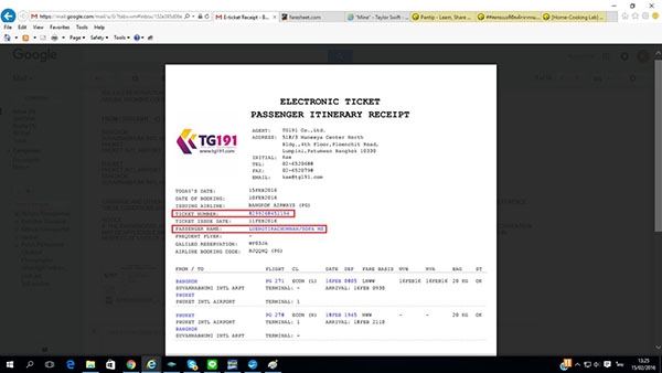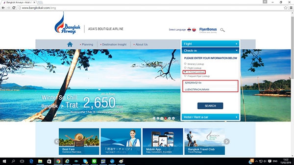 กดเลือกที่หัวข้อ E-Ticket Lookup แล้วใส่ข้อมูลที่เป็นหมายเลข e-ticket และนามสกุล ดูข้อมูลได้จากเอกสาร e-ticket ที่เราได้รับหลังจากทำการออกตั๋วแล้วคะ หมายเลข e-ticket เราก็ดูจากตรงนี้นะ
