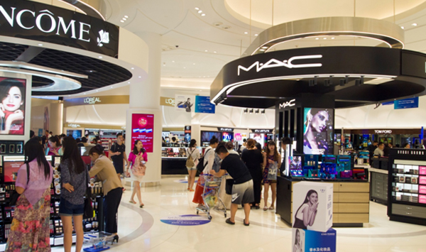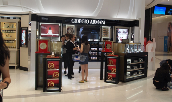 ข้างในคนเยอะมากกก…มองไปทางไหนก็เจอพี่จีน และและบูธเครื่องสำอางแบรนท์ดังมากมาย เช่น Estee Lauder , Dior , SK-II , LA-MER และยี้ห้ออื่นอีกเพียบเลย เขาว่ากันว่ามันมีมากกว่า 40 แบรนด์เลยนะครับ เชิญชมภาพบรรยากาศกันเลยครับ